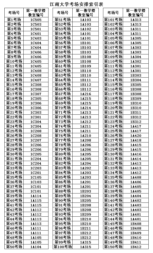 以下为开云电竞平台官网考场平面示意图和教室对照表。